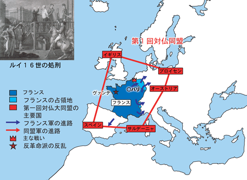 ことをきっかけに第1回対仏同盟をつくった。このため、フランスは全ヨーロッパ を敵にまわすことになり、国内でも革命政府に対する反乱が広がった。